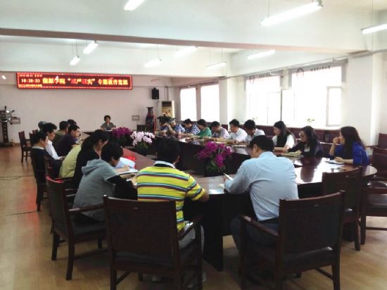 6月11日下午,bwin必赢国际中国官方网站在动力楼619会议室开展了“三严三实”专题教育党课,学院党委书记张桂芬主讲,学院党政领导班子、党委委员、各党支部书记及支委、各系主任及副主任、各基层研究所(中心)领导班子,以及机关工作人员、辅导员参加了学习。