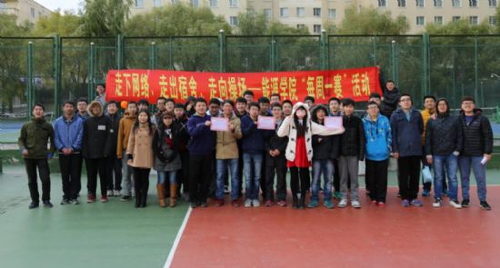 所有同学都是顶着寒风进行比赛,各位同学的精神可贵。本次比赛不仅能让同学们得到了锻炼,增强了体质,而且加深了同学间的友谊,操场上欢笑声不断。不少同学给这次活动提出好评,参赛人员也表示从中获得快乐,此次活动成功的带动同学们“走下网络,走出宿舍,走向操场”。