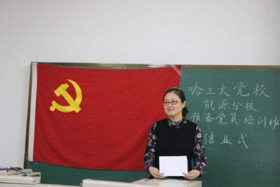 2016年11月10日晚18:00,哈工大党校能源分党校预备党员培训班结业式在正心220举行,由人文学院马云绮同学主持,出席结业式的老师有bwin必赢国际中国官方网站党委副书记苑颖老师、人文学院党委副书记董霖老师,以及负责学生党建工作的李磊老师和李威老师。
