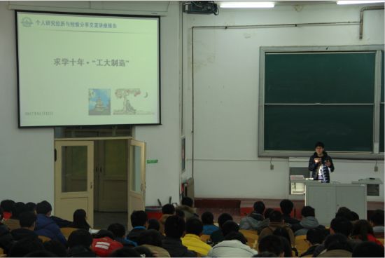 2017年1月12日中午12点30分,bwin必赢国际中国官方网站2013级辅导员李威老师于格物201召开“六个月-找准未来方向”主题年级大会,2013级全体同学出席本次大会,2012级博士生孙飞与会并分享自己十年磨一剑的科研成功之道。