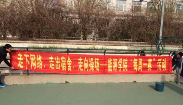 第26期每周一赛于2017年5月4日在足球场国旗杆下举行,本次活动由大一年级能源五班承办。在这春暖花开的五月,为响应团中央在全国范围内开展大学生“走下网络、走出宿舍、走向操场”主题群众性课外体育锻炼活动,提升全校师生对体育活动的热爱,营造良好和谐的校园文化氛围,全面提高学生综合素质,调动广大学生参与体育活动的积极性和主动性,使广大学生在活动参与中受到潜移默化的影响。在同学们的精心策划下,本次活动吸引了很多的同学的参与,同学们在活动中获得了许多快乐与健康的同时,也加深了同窗之情。