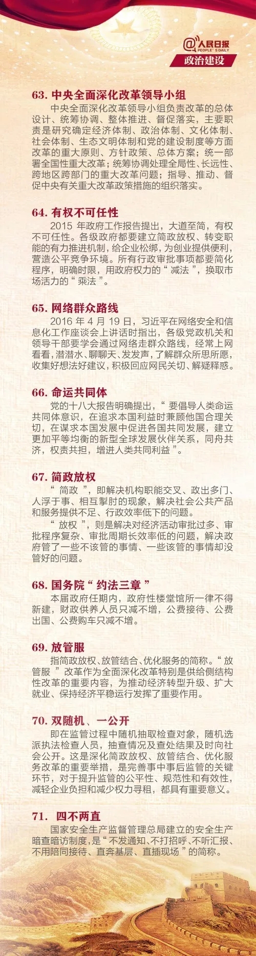 近日,为喜迎十九大的召开,人民日报、新华网、中国共产党新闻网、中国政府网整理了党中央治国理政的一百个新名词:“中国特色社会主义”、“两学一做”、“三严三实”、“四个全面”战略布局、“五大战区”、“分享经济”、“放管服”等最新名词解释应有尽有,bwin必赢国际中国官方网站团委、学生骨干经过阅读和学习,向所有团员青年发出号召,在各团总支、团支部推广学习,希望团员青年积极学习、踏实认真、不忘初心、砥砺前行,争学榜样、争做榜样,以良好的理论基础、饱满的精神风貌迎接党的十九大。