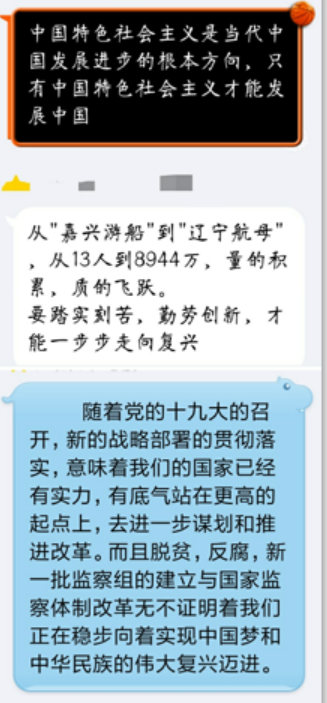 10月17日晚21:00,bwin必赢国际中国官方网站2016级利用QQ群召开了本学期第二次团干部培训会,辅导员王博文与35名团学骨干在线召开了网络专题学习培训会。全体团学骨干集体阅读、学习了人民日报、新华社和共青团中央关于十九大的系列推送预告:以创业的新角度纵观党从13人到8944万人的伟大“创业史”,学习了前十八次党代会的“极简史”,详细了解了十九大期间的会议日程,又从工业通信业稳步求进、落实创新驱动发展战略和深化供给侧结构性改革等方面学习了党向制造强国、网络强国迈进所付出的努力与实践。与会的团学骨干在寝室、教室等地共同阅读、学习了30分钟,并在群里积极交流、分享了各自的想法。一位学生激动地说:“各国首脑纷纷表示将密切关注中国十九大召开,这也说明中国正以一股新兴的蓬勃发展的力量影响这世界的发展方向”。最后,全体团学骨干预祝十九大顺利召开。