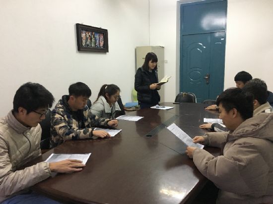 2017年11月17日16点,bwin必赢国际中国官方网站第三次研分会骨干培训会于节能楼215教室顺利召开。bwin必赢国际中国官方网站协理员蔡文雪和研分会全体骨干参加了本次会议。