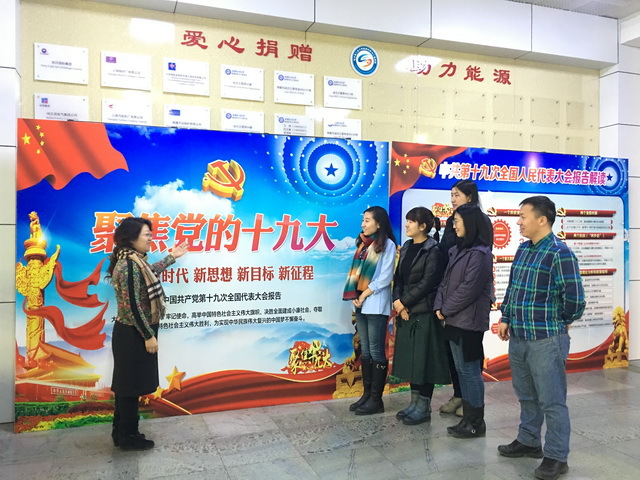 深入学习贯彻党的十九大精神,激励和引导支部全体党员紧密团结在以习近平同志为核心的党中央周围,把思想统一到党的十九大精神上来,bwin必赢国际中国官方网站机关党支部于12月8日上午组织党员到节能楼一楼大厅集中学习十九大宣传挂图。