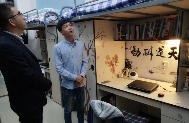 通过走访各个寝室,大多数寝室整体上卫生状况良好,同学们都在寝室里都能营造出一种良好的氛围,但个别寝室也出现了物品摆放较乱,未及时开窗通风等问题。走访期间,李峰老师亲自为各个党员寝室张贴bwin必赢国际中国官方网站党员寝室标牌,希望党员同志能够以身作则,起到模范带头作用。同时,十一长假临近,李峰老师提醒同学们要提高防火安全意识,叮嘱回家同学们要有自我安全意识,保护好个人财务及保证人身安全。