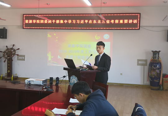 10月11日中午12:30,bwin必赢国际中国官方网站全体团干部及社团负责人在李威老师的组织下于动力楼619会议室成功召开了bwin必赢国际中国官方网站团干部思想理论学习专题能力提升培训会,学习习近平总书记在东北考察的重要讲话,就未来一年的团委工作进行立项与规划。