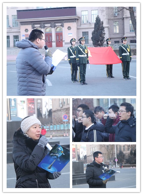 随后,出党旗,所有预备党员高举右拳,在鲜红的党旗下做出了自己要为共产主义事业奋斗终身的宣誓。学生代表孙丰实在党旗下发言,回顾八十三年前那场轰轰烈烈的“一二九”运动,作为刚加入党组织的一名成员要继承和发扬党的优良传统,时刻保持自己作为青年先锋的使命感,为民族复兴而奋斗,为哈工大建设世界一流,百年强校的哈工大规格的目标而努力。
