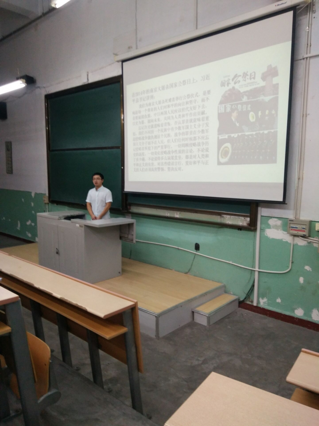 苗博宣介绍了1999年12月19日澳门回归的过程和重要意义。澳门回归是“一国两制”伟大构想的又一胜利,这不仅反映了我国国力的日益强盛,更体现了中华儿女对于祖国统一的殷切希望和不懈努力;雷睿介绍了历史上12月18日的多个事件,包括昆仑山反击战、中共十一届三中全会召开等内容,从历史唯物主义的辨证角度分析了自己对历史的理解;余志豪扩大思考角度,从历史长河的发展以及杰出人物的传奇与消亡中、深刻了对生与死的理解,并结合自身所见所闻,展开了充满哲理的思考,分享了自己的生死观。姚京达介绍了呼格吉勒图案的经过,以呼案为代表,分析了中国法制进步的历程,体现了依法治国的重要意义。王科朝介绍了国家和人民为铭记“南京大屠杀”付出的努力,铭记历史,直面历史,是大国的尊严和气度,也是大国发展和进步的决心。