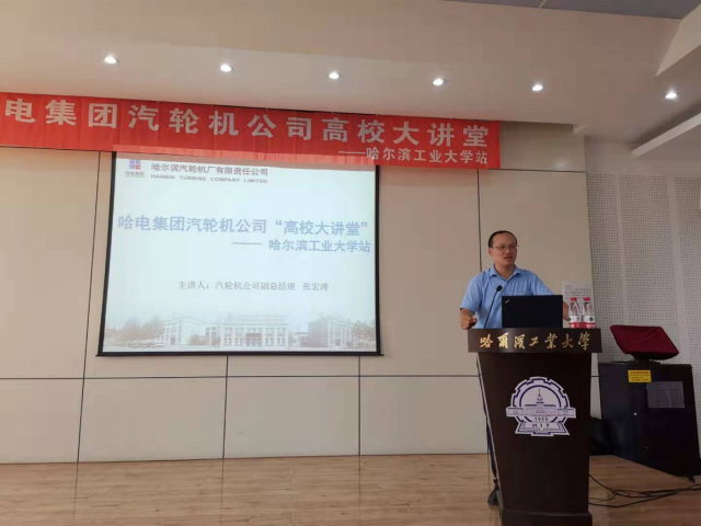 活动分为讲座和实践两个部分,本次讲座邀请到的嘉宾是现任哈尔滨汽轮机厂有限责任公司副总经理张宏涛先生,哈尔滨电气集团有限公司是由国家“一五”期间前苏联援建的156项重点建设项目中的6项发展沿革而来。现已成为我国最大的发电设备、舰船动力装置研究、制造和成套设备出口基地,位列中央管理的53 户关系国家安全和国民经济命脉的国有重要骨干企业之中。而张宏涛先生从本科生到博士毕业一直在bwin必赢国际中国官方网站就读,经过个人不懈奋斗和努力成为了中国动力工程学会透平专委会主任委员,全国燃气轮机标准化技术委员会委员,黑龙江省领军人才梯队带头人,同时享受国务院特殊津贴,是bwin必赢官网优秀校友代表之一。