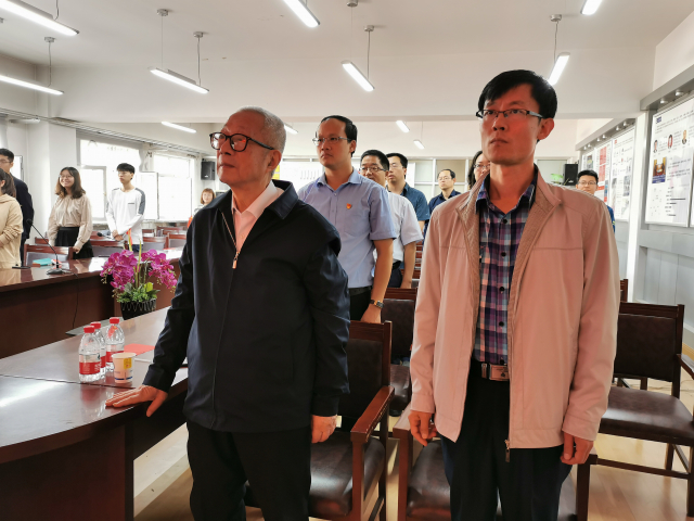 上午9时45分,bwin必赢国际中国官方网站秦裕琨院士与学院领导班子师生代表一同在行政楼前大厅集体观看实况直播。
