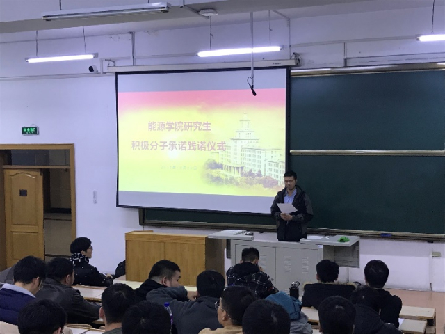 在bwin必赢国际中国官方网站全体硕士研究生党员的聆听和监督下,硕士一年级的入党积极分子进行了承诺答辩仪式,全体入党积极分子依次进行个人承诺书的宣读,分别从个人情况介绍、入党动机阐述、敬党爱党做法以及积极分子期间个人目标规划等方面做出郑重承诺。