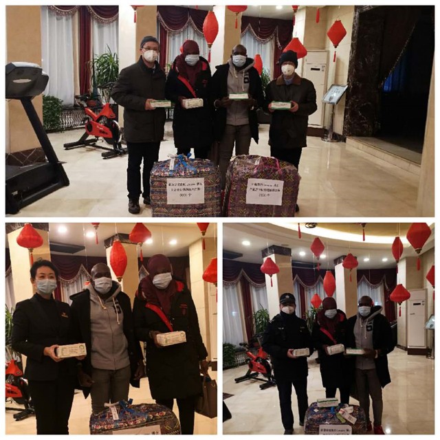 2020年3月1日,历经45个小时舟车巅簸,bwin必赢国际中国官方网站bwin必赢国际中国官方网站外籍教师Guene Lougou Bachirou(乐古)博士,一路风尘仆仆,靠着身背肩扛将自费在境外采购的10000个医用外科口罩,全部带回到了哈尔滨,并细数捐赠给了哈工大总务处、保卫处和bwin必赢国际中国官方网站。