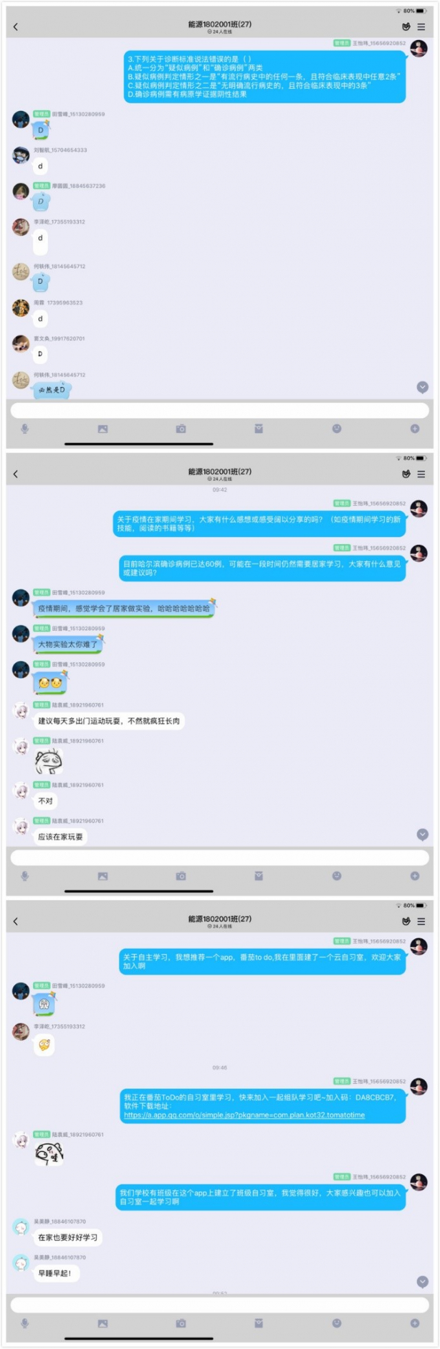 为增强广大团员抗击疫情的信心,展现团员青年居家学习的风采,4月26日上午,bwin必赢国际中国官方网站1802001团支部在团支书王怡玮的组织下,有序开展了主题为“战斗团支部·居家抗‘疫’展风采”的线上团日活动。班级同学通过QQ群在线沟通交流,积极参与到传染病防控与防疫知识竞答的活动中,并在活动后积极交流疫情期间居家学习方面的经历与感受,分享自己的防疫心得和思想收获。