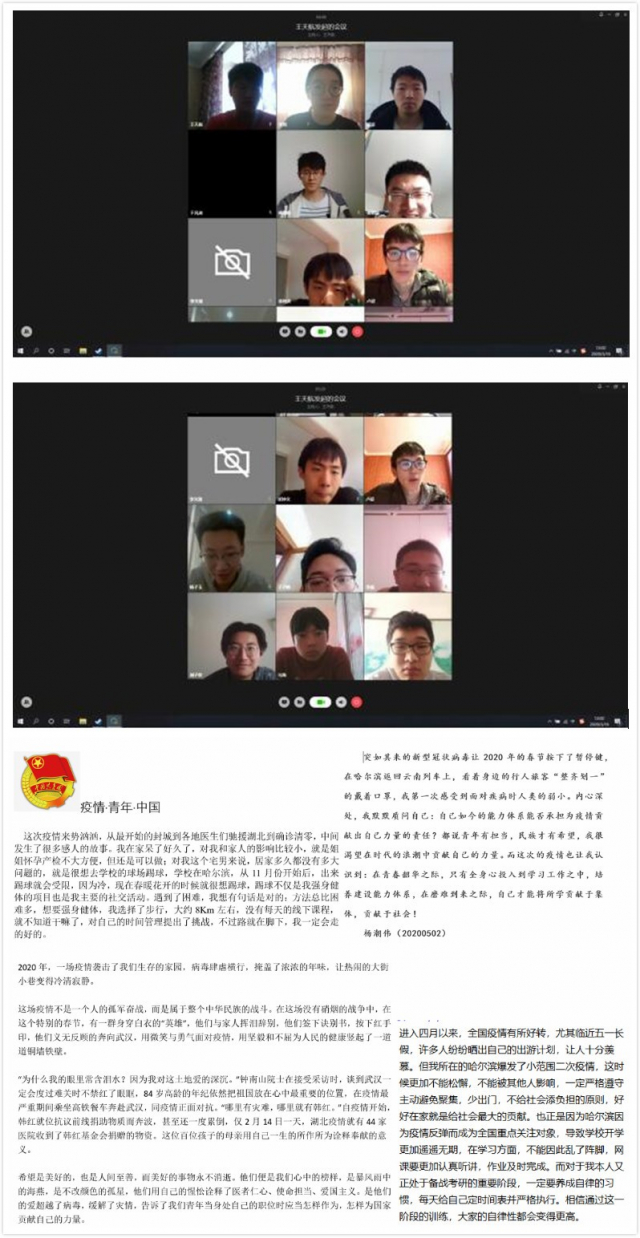 为在建校百年的重要阶段深入推进爱国主义教育,培养堪当大任的新时代青年,贯彻党中央关于新冠肺炎疫情防控各项决策部署,bwin必赢国际中国官方网站1702402团支部于5月2日下午在线上开展了“疫情·青年·中国——线上思考体悟交流会”团日活动。本次活动由团支书刘子仪主持,支部全体成员参加了本次活动。