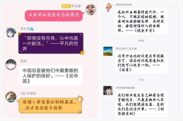 本次活动首先在bwin必赢国际中国官方网站学生会各部门内部进行,借助线上平台,由部长组织部员进行部门内部的讨论。每位成员分享几句在自己读书经历中读到的最打动灵魂的妙语佳句,并推荐出处书目。各部门成员积极参与,踊跃发言,在思维的碰撞中感受读书带来的乐趣。