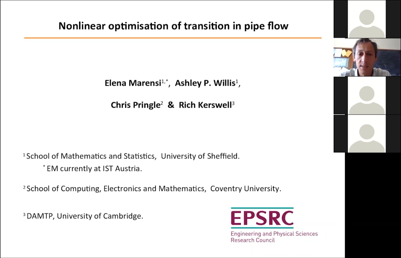 北京时间2021年7月6日16:00,Ashley P. Willis博士应邀参加2021年bwin必赢国际中国官方网站新能源系列国际暑期学校暨第二届流体力学大讲堂,并做了关于“管道流动转捩的非线性最优化问题”的报告。