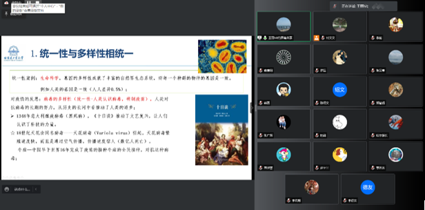 2022年5月5日,bwin必赢国际中国官方网站举办了“变疫情危机为开展课程思政契机-能源动力课程思政专项行动”第六场线上研讨会。本场研讨会主题为“统一性和多样性相统一”,由王丽老师做主题报告,教育部高校思想政治工作精品项目、黑龙江省高等学校课程思政建设教学团队成员、学院各系所中心的20余名授课教师参与研讨,bwin必赢国际中国官方网站副院长罗磊主持研讨会。