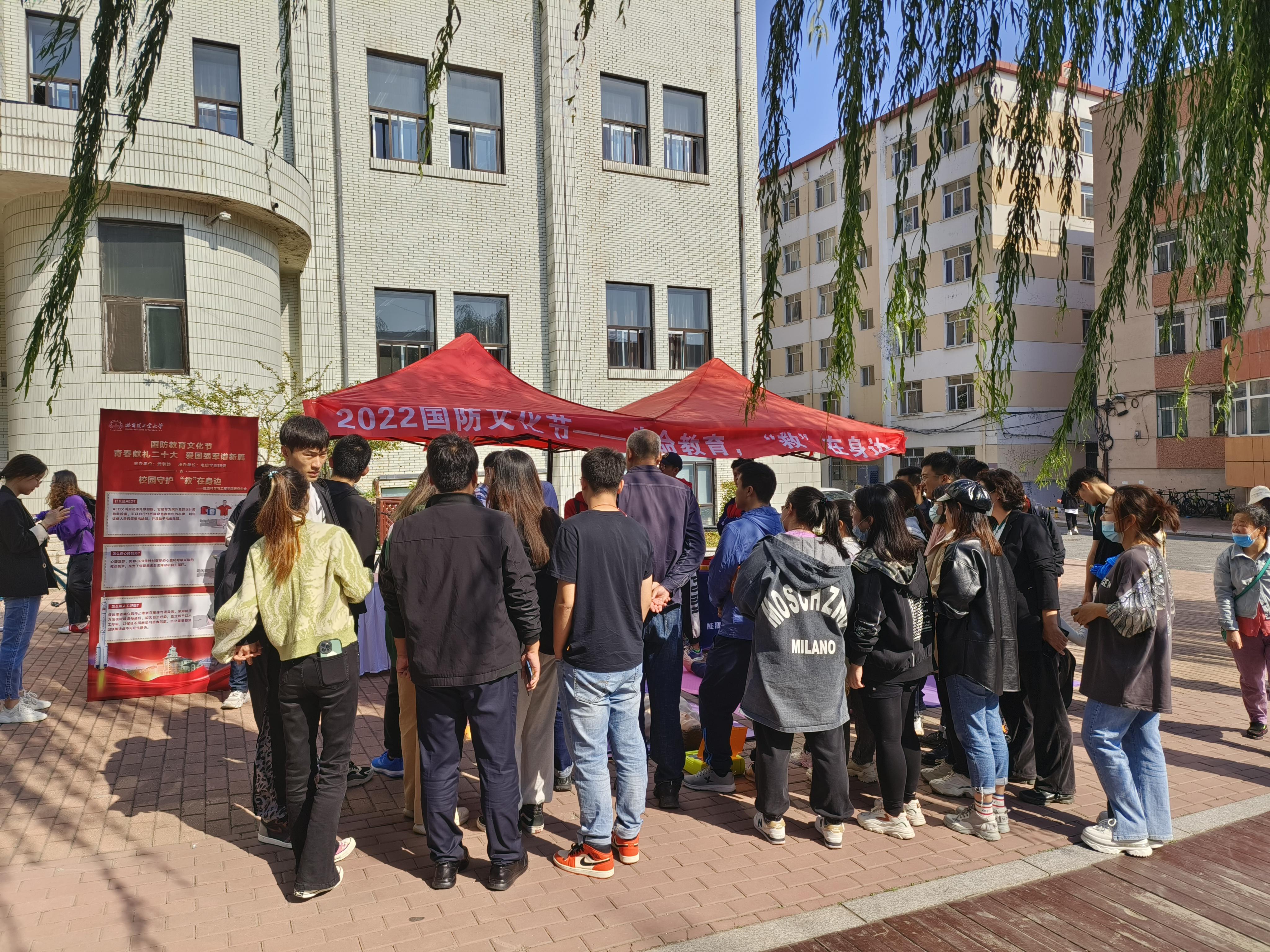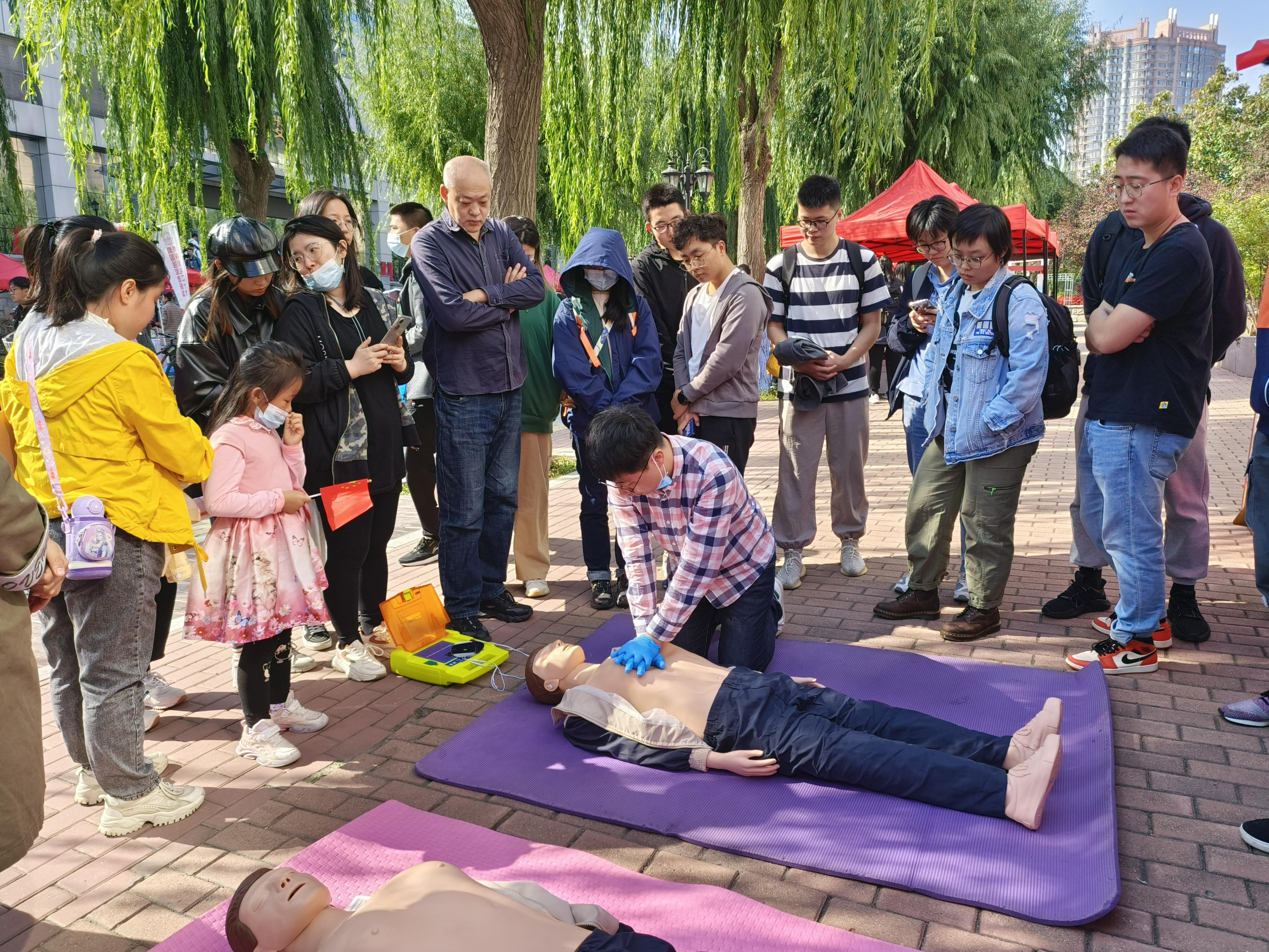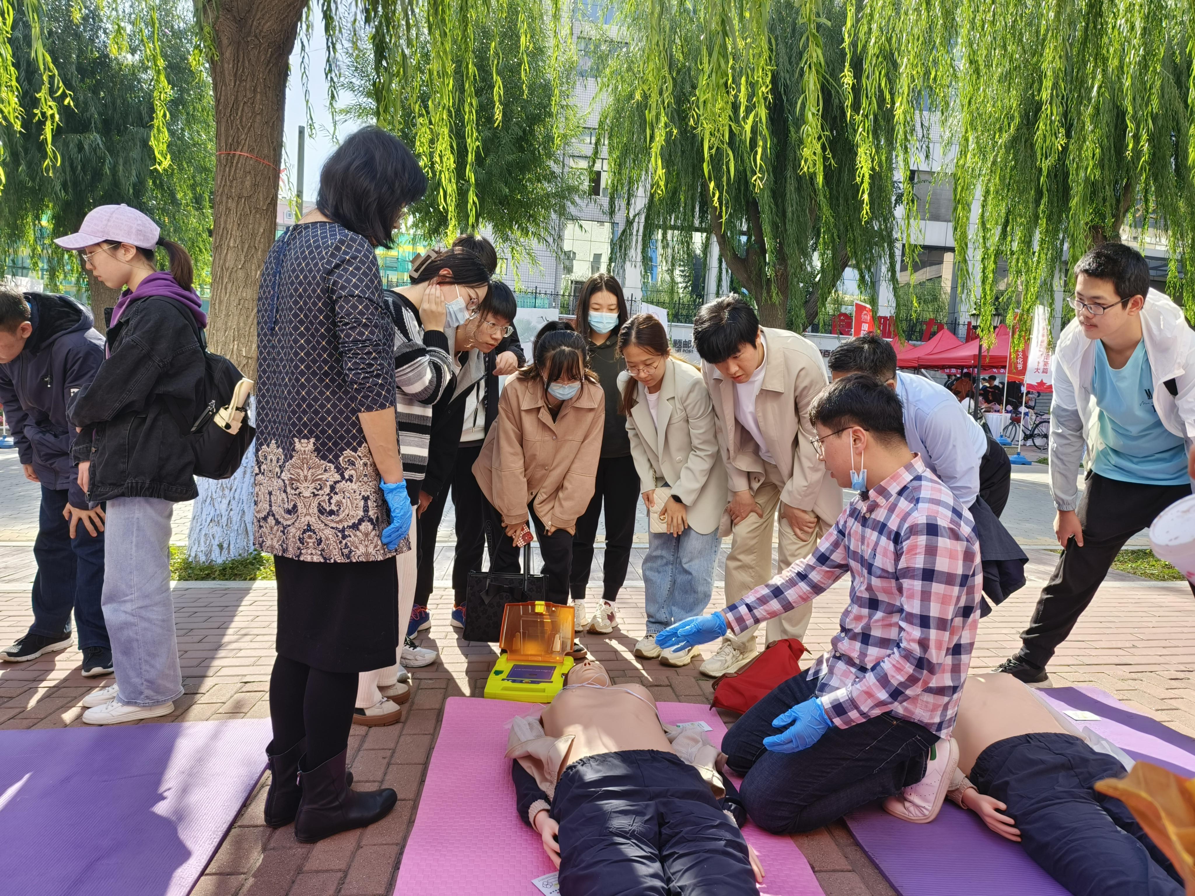 为弘扬爱国主义精神,增强青年学生国防观念,9月27日上午,学校武装部举办以“青春献礼二十大,爱国强军谱新篇”为主题的“国防教育文化节”系列活动,bwin必赢国际中国官方网站研究生会承接关爱生命,“救”在身边应急救援活动,面向全校师生开展心肺复苏、人工呼吸和AED使用方面的演示和体验,为前来体验的师生进行详细讲解。