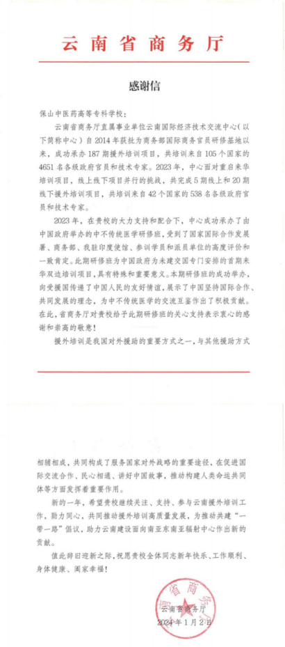 点赞!一封来自云南省商务厅的感谢信