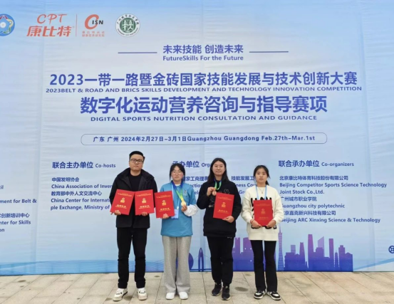 近日,由金砖国家工商理事会中方理事会、一带一路暨金砖国家技能发展国际联盟及中国科协一带一路暨金砖国家技能发展与技术创新培训中心联合主办的2023一带一路暨金砖国家技能发展与技术创新大赛数字化运动营养咨询与指导赛项决赛在广州城市职业学院落下帷幕。beat365官方网站代表队勇创佳绩,荣获高职组个人一等奖1项、三等奖1项、优秀奖1项;团队荣获最佳组织奖1项、优秀指导教师1项。