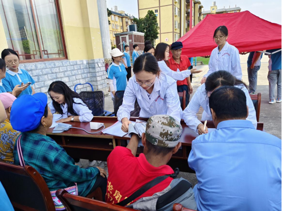 活动中,为引导当地居民进行健康自我管理,更好地预防疾病,同学们组成健康管家团队,采取多种形式给芒宽乡居民开展健康教育。通过测量血压、身高体重等方式,对居民进行了简单的健康体检;以“吹气球游戏”模拟血压,对高血压患者进行科普讲解,帮助他们及时做好血压控制;用图文并茂的方式与居民互动,让他们了解中国居民平衡膳食宝塔,学会合理饮食;带领居民跳健康体操,帮助其学会一些简单的锻炼动作。
