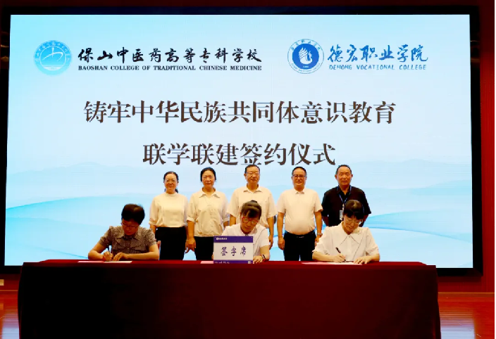 德宏职业学院党委书记梅学能在致辞中强调,要深刻领会学校铸牢中华民族共同体意识教育的重要意义,以开展铸牢中华民族共同体意识教育联学联建活动为契机,充分发挥各自学校优势和特点,广泛交流、整合资源、搭建平台、深度合作,以培养爱党爱国德技并修人才为己任,以兴边稳边固边为责任担当,将铸牢中华民族共同体意识融入办学治校、教书育人全过程,有效深化学校铸牢中华民族共同体教育。