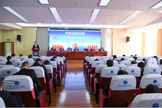 3月11日,学校召开四届三次教职工暨工会会员代表大会,党委副书记、工会主席杨朝丽主持会议。