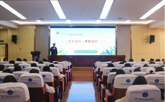 市公安局交警支队直属大队开展交通法规知识宣传讲座,通过酒后驾驶危害、违反交通规则严重后果等典型案例以案释法,让同学们亲自体验酒精检测仪,倡导大家养成文明出行的良好习惯,共同营造安全有序的交通环境。
