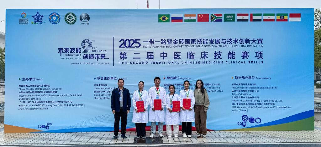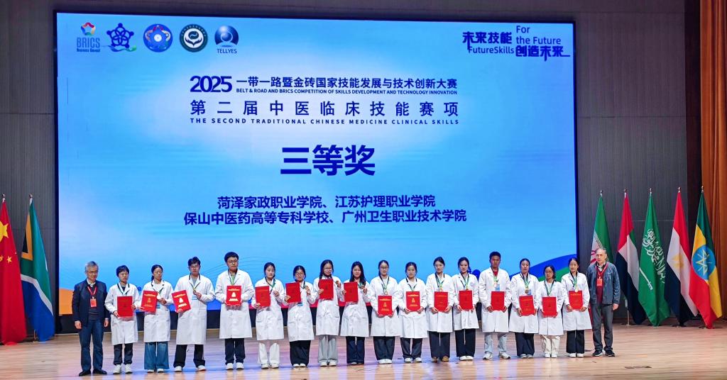此次获奖充分展现了我校学生扎实的专业素养与过硬的实践能力,是中医学高水平专业群建设成效的生动体现,为“一带一路”沿线国家及金砖国家间的职业教育交流注入了新活力。学校将以此次大赛为契机,持续深化“三教”改革,坚守“以赛促教、以赛促学、以赛促改”理念,推动“岗课赛证”一体化融合,稳步提升人才培养质量。