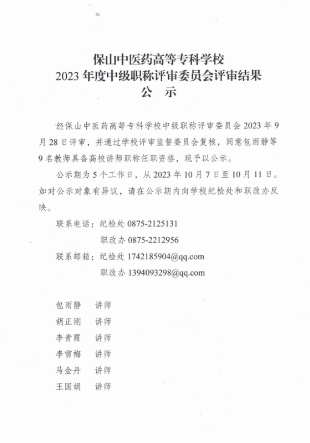 beat365官方网站2023年度中级职称评审委员会评审结果公示