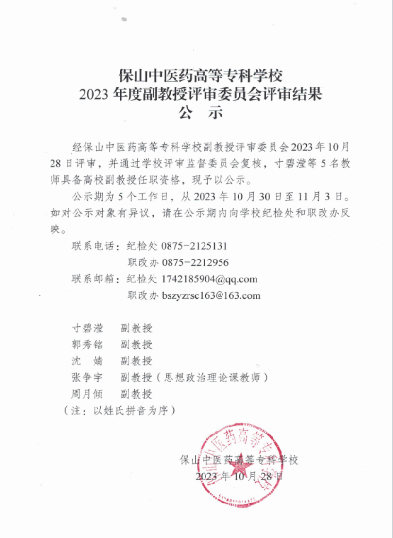 beat365官方网站2023年度副教授评审委员会评审结果公示