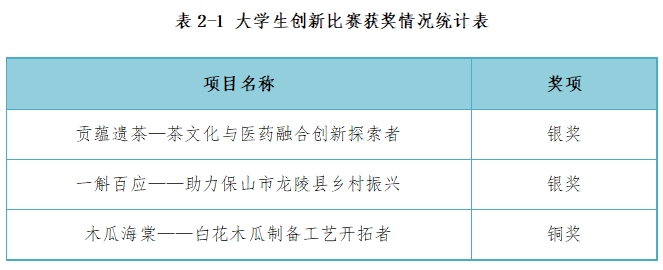 毕业生吴朝邦获2023—2024年度“高校毕业生基层就业卓越奖”;组织评选推送的“五育并举铸精英,就业提质保民生”案例入选云南省10个“爱上云南 就在云南”留滇就业和返乡创业主题活动典型案例,在中国国际大学生创新大赛(2024)云南赛区选拔赛获银奖2项,铜奖1项。